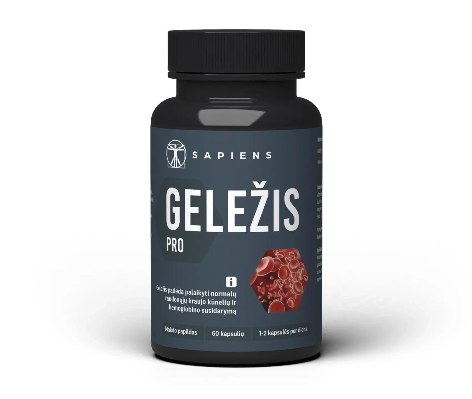 SAPIENS Geležis PRO maisto papildas, skirtas kraujotakos sistemai ir kraujo apytakos procesams (geležis padeda palaikyti normalų raudonųjų kraujo kūnelių ir hemoglobino susidarymą) ir bendrai organizmo imuninės sistemos būklei (geležis padeda palaikyti normalią imuninės sistemos veiklą). Net 25 mg geležies bisglicinato vienoje kapsulėje! Patogus vartojimas, neutralaus skonio.