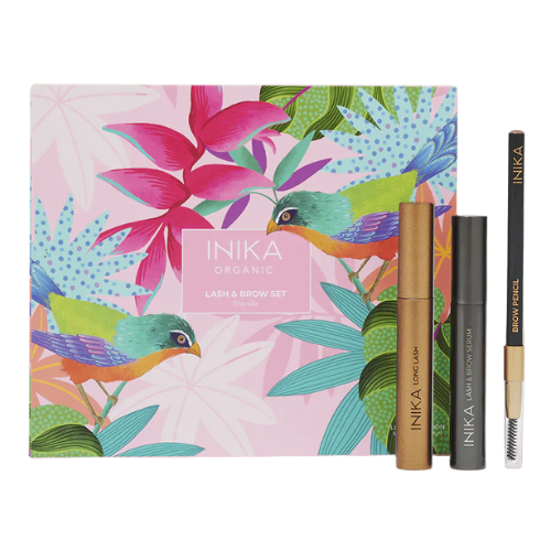 INIKA Organic ilginantis blakstienų tušas: alavijų sultys, ricinų aliejus, taukmedžio sviestas, simondsijų aliejus, vitaminas E, karnaubos vaškas. INIKA Organic blakstienų ir antakių serumas: ricinų aliejus, simondsijų aliejus, vitaminas E, rozmarinų ekstraktas, kokosų aliejus, saulėgrąžų aliejus. INIKA Organic antakių pieštukas: taukmedžio sviestas, simondsijų aliejus, karnaubos vaškas, vitaminas E.