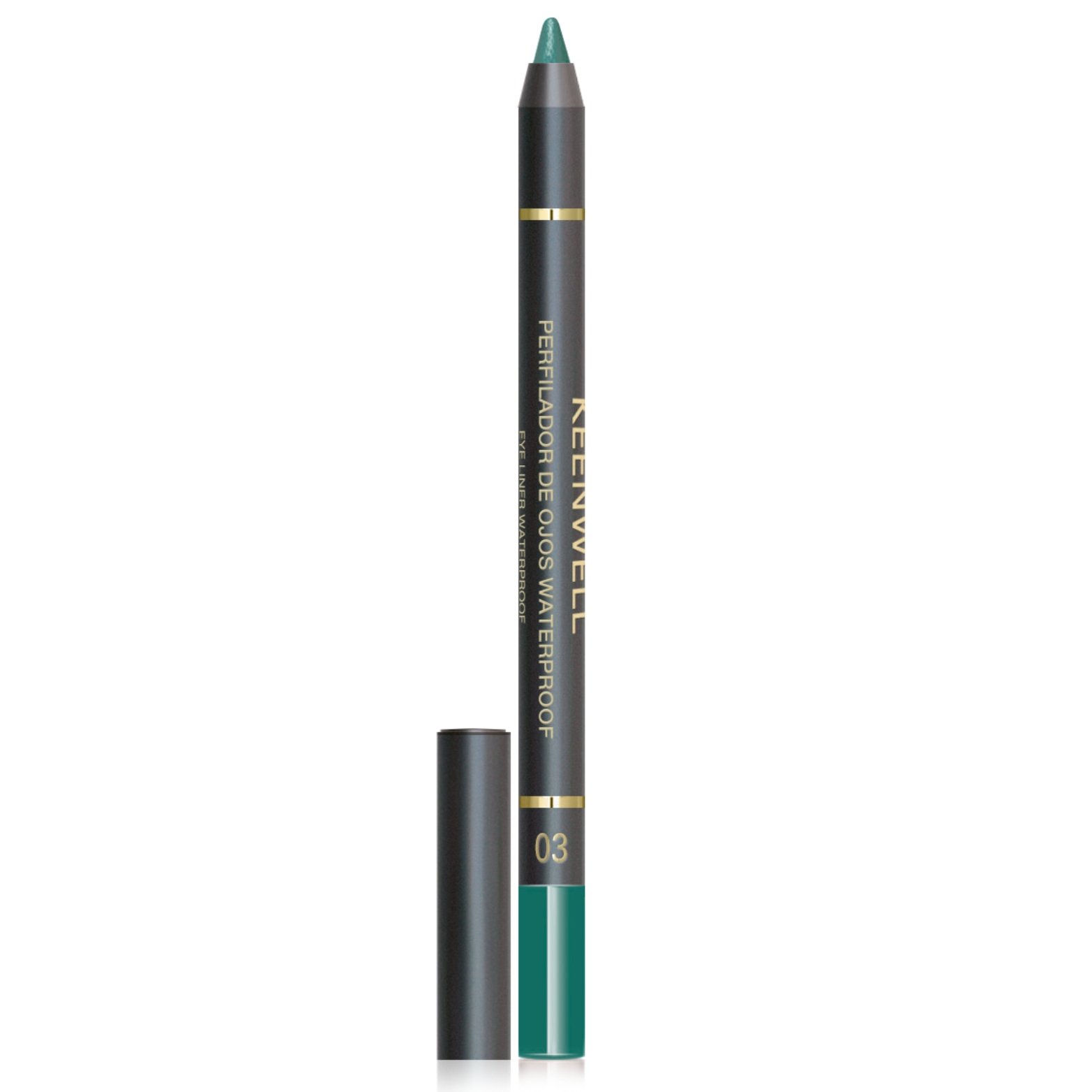 Ilgai išliekantis, vandeniui atsparus Keenwell akių pieštukas Nr. 03 „Emerald“ suteikia intensyvų žalią atspalvį ir lengvai slysta ant odos.