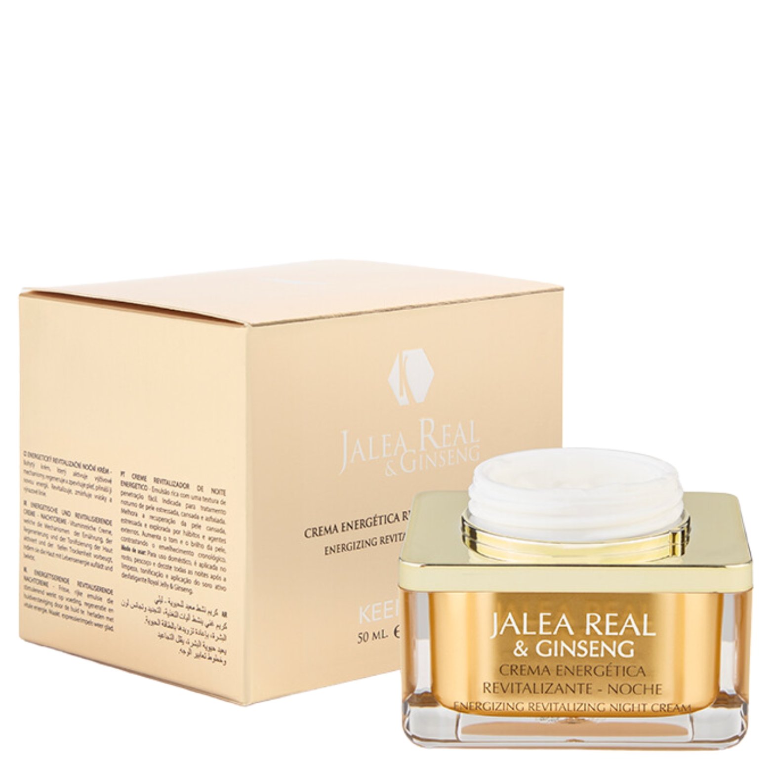 KEENWELL ROYAL JELLY energizuojantis atkuriamasis naktinis kremas veidui, praturtintas bičių pieneliu, ženšeniu, jūrine DNR ir sezamų aliejumi. Maitina, drėkina ir atstato odą, suteikia jai gyvybingumo ir sumažina nuovargio žymes.