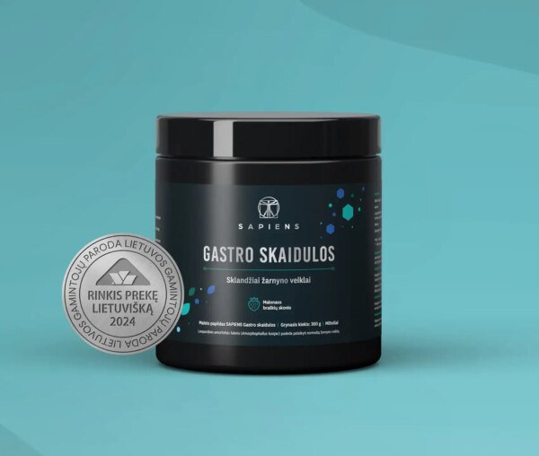 SAPIENS Gastro skaidulų kompleksą sudaro įvairios natūralios skaidulinės medžiagos, plačiau dar vadinamos ląsteliena. Tai puikus būdas papildyti mitybą skaidulomis ir pasirūpinti savo virškinamojo trakto veikla.